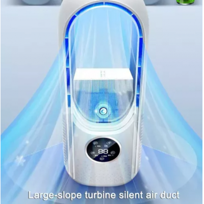 This portable air conditioner fan has no blades that can hurt curious children or hairy friends. It also has a soft ambient light that calms your mind. With 6 speeds to choose from, you can adjust the air volume to meet your needs and enjoy a fresh breeze that reduces the temperature in your room. Just press the button with your finger and adjust the temperature to your taste.