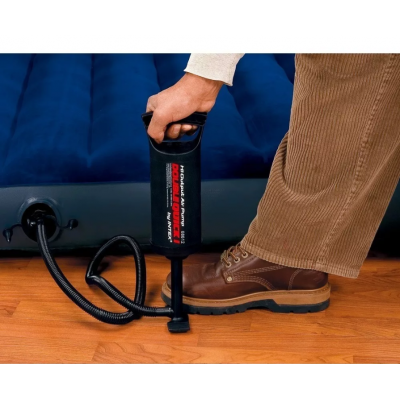 Intex's Double Quick Manual Air Pump is light and compact. It comes with nozzles to adapt to various types of inflatables such as mattresses, buoys, swimming pools and toys.
