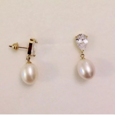 Biwa 7mm natural pearl earrings and 18k gold jewelry zirconias