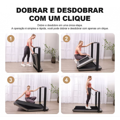 The treadmill has a folding design, which facilitates storage in small spaces. After use, it can be stored in places like under the bed or next to the couch. It occupies only 0.16 m² when doubled.