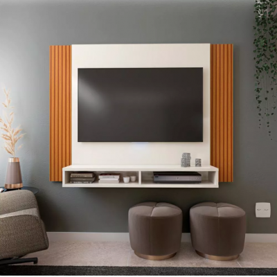 It has MDP material with high quality UV painting, has 2 niches and 1 25mm top to place decorative or electronic objects.