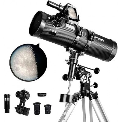 • 130eq Newtonian Telescope of 130 mm diameter and 650 mm focal distance has a light collection capacity with a brighter image and more suitable for observing the heavenly object even in deep space. High quality optics: Objective lens has a fully coated glass optics that improves the optical system performance of this astronomical telescope and allows you to observe in detail more brilliant planets.