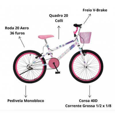 Bike for girls Colli Jully rim 20 TAM 12 White with rosal basket for girls coll
