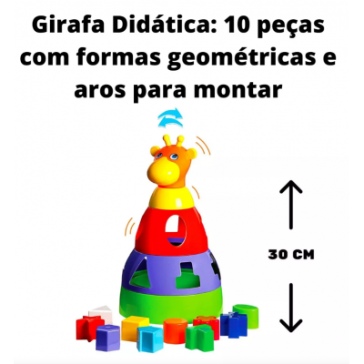 1 didactic giraffe and 10 pieces with geometric shapes and rims to assemble