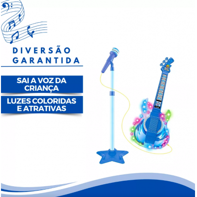 Microphone with children's guitar sound and light boys rock show