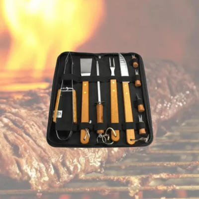 The Advantage Barbecue Kit brings together several items in a single kit. The pieces are stainless steel. The nylon case is versatile to be transported to the beach house or even to be stored in the kitchen.
