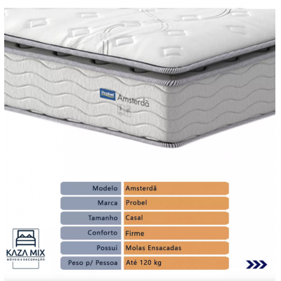 Box Bed and Mattress Amsterdam Spring Spring Casal Probel Color White