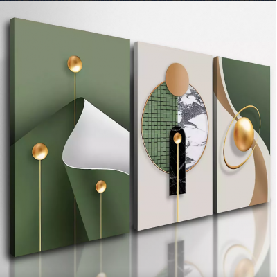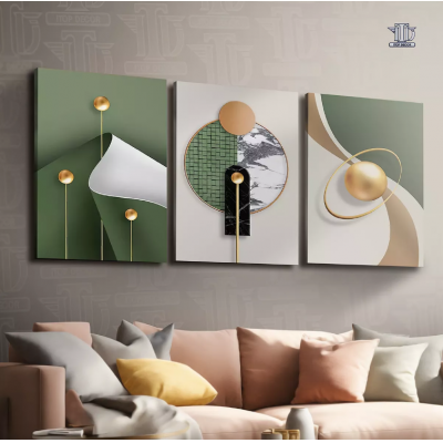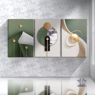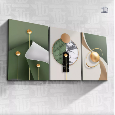 Geometric abstract decorative frames GOLD GREEN ROOM 3 pc
